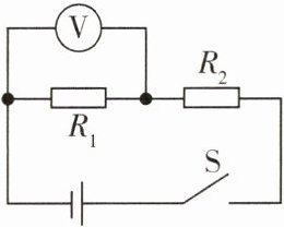 4 [2024贵州中考]如图所示电路,电源电压$U= 3V$保持不变,定值电阻$R_{1}= 5Ω$,闭合开关S,电压表示数为2V。求: