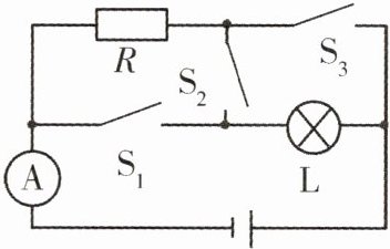 7 如图所示,L是标有“6V 1.2W”字样的小灯泡,R是定值电阻,断开开关S₂,闭合开关S₁和S₃,灯泡正常发光,电流表的示数为0.5A。