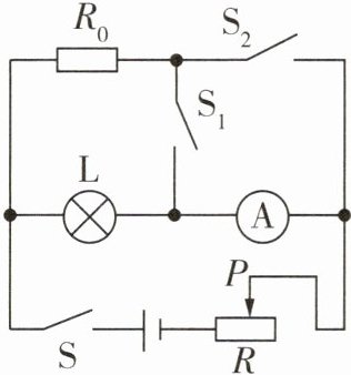 (2)闭合开关S、$S_{1}$,断开开关$S_{2}$,保持滑片P位置不变,记下此时电流表的示数I。