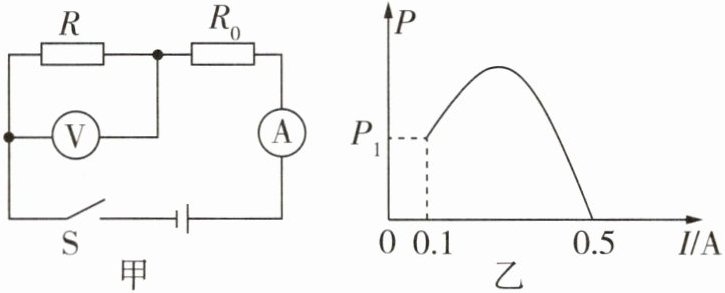 10 电阻式传感器被广泛应用于生产和生活,它的核心部分是一只可变电阻,图甲中R₀为定值电阻,R为电阻式传感器,其阻值从0变为60Ω的过程中,测得传感器R的电功率与通过它的电流关系图像如图乙所示,已知电源电压恒定不变。下列说法正确的是(