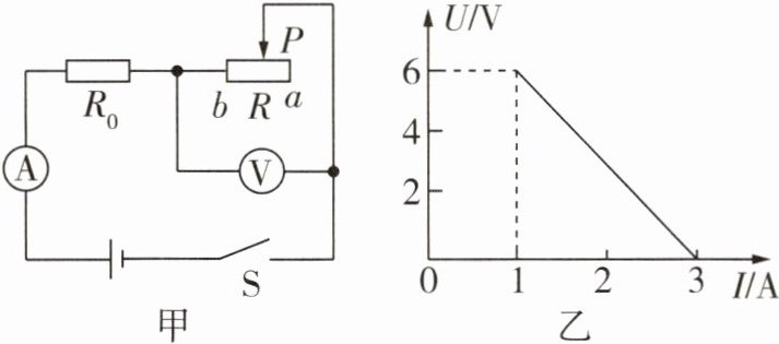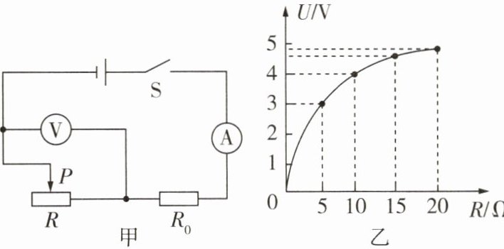 8 如图甲所示的电路中,电源电压不变,R₀为定值电阻,R为滑动变阻器。闭合开关,滑片P移动过程中,电压表示数随滑动变阻器接入电路的阻值变化的关系如图乙所示。下列说法正确的是(