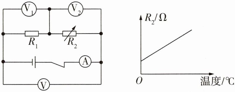 温度升高时,热敏电阻$R_{2}$