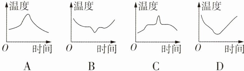 4 科学推理 [2024苏州外国语学校期中]将浸有少量酒精的棉花裹在温度计的玻璃泡上,温度计示数随时间变化的大致图像如图所示。若在该实验的过程中,用风扇对酒精棉吹风,则下列最能合理反映此过程温度计示数变化的图像是 ( )
