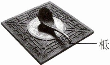 9 教材素材改编 公元1世纪初,东汉学者王充在《论衡》中记载:“司南之杓,投之于地,其柢指南。”如图,“柢”即握柄,是磁体的