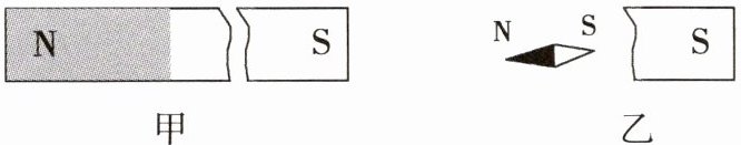 【解析】一个磁体有且只有两个异名磁极,根据磁极间的相互作用规律可知,题图乙中与小磁针S极接近的是该段磁体的N极,即北极;如果把这两段磁体沿裂纹吻合放在一起,则这两段会相互吸引。
