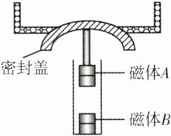 相互排斥,磁体A将密封盖顶起,防止臭气外漏。若磁体A下端为N极,则磁体B上端为N