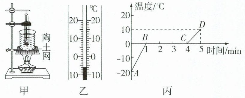 (5)小杨根据实验数据画出的冰熔化时温度随时间变化的图像如图丙所示,由图丙可知,在$BC$段,该物质处于____态。