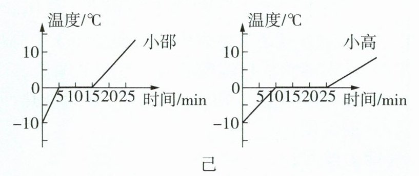 (11)同组的小邵和小高两位同学利用如图甲所示的实验器材,绘出冰的温度—时间图像,老师发现小邵和小高两位同学的图像略有不同,如图己所示,不可能造成这种情况的原因是____(填序号)。