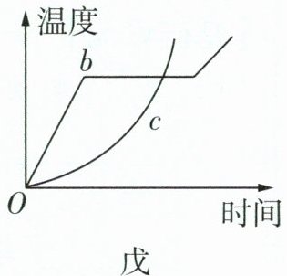 (10)小华分别利用$b$、$c$两种物质做“探究固体熔化时温度的变化规律”实验,由$b$、$c$两物质熔化前后的实验数据绘制的温度—时间图像如图戊所示,由图像可知,$b$、$c$两种物质的区别是____。