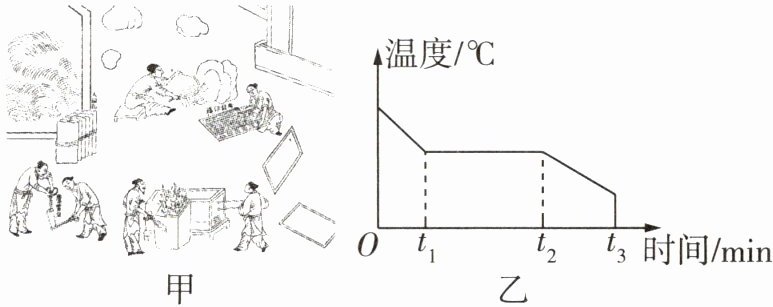 2 新导向·古代文化 [2025广州月考]图甲是《天工开物》中关于用铜铸币的情景,图乙是液态铜在模具中凝固时,温度随时间变化的图像,下列说法正确的是 (