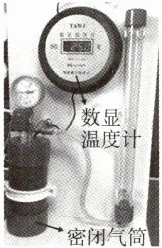 (2) 打气过程中,如果密闭气筒中的气压大于外界大气压,则停止打气,然后打开密闭气筒的排气阀,此时数显温度计的示数会