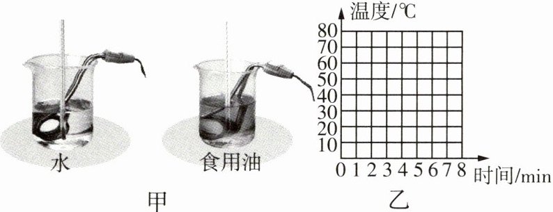 (4)①每隔1min测量一次水和食用油的温度,实验数据记录如表所示。