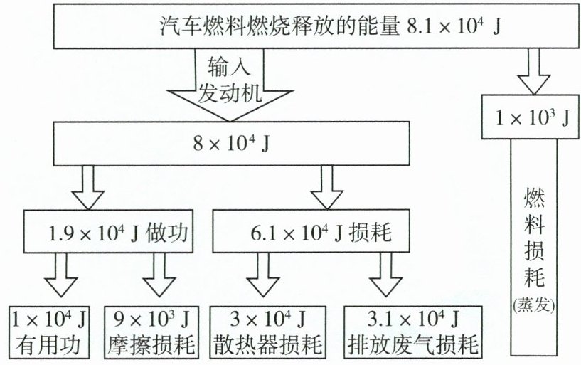 3 物理小组的同学在社会实践活动中,绘制了一辆某种型号汽车在额定功率下行驶时单位时间内的能量流向图,请你参与讨论下列有关问题。