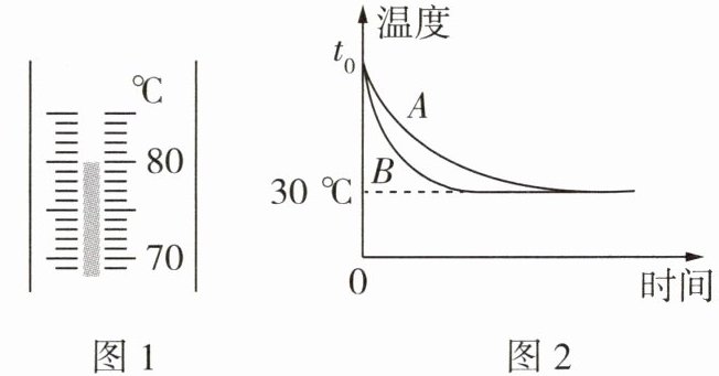 11 新考法[2024镇江中考]为比较A、B两保温杯的保温性能,小红在两个保温杯中分别倒入0.1kg相同温度的热水,用温度计测量其初温t₀,示数如图1所示,t₀=