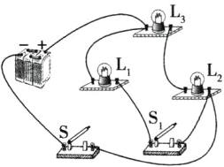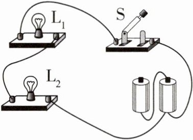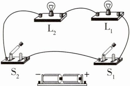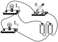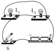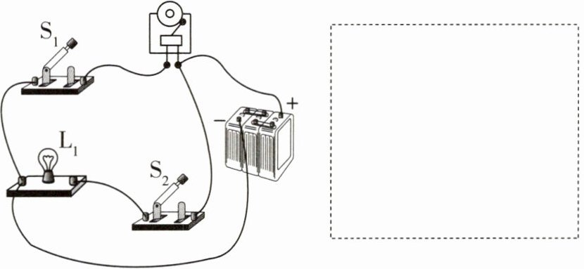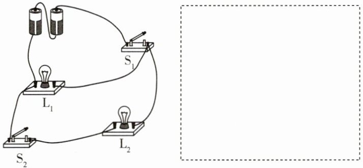 6 要求只添加一根导线,使灯$L_{1}和L_{2}$并联,开关S只控制灯$L_{1}$。