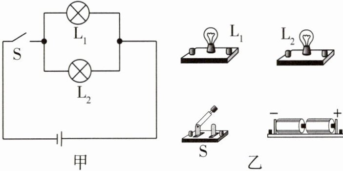 4 如图所示,根据图甲中电路图,用笔画线代替导线将图乙中实物连接起来。