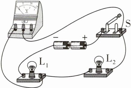 B 由题图可知,开关闭合后,电压表与灯$L_{2}$并联,测量灯$L_{2}$两端的电压。故选B。