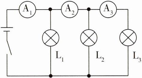 5 [2025 厦门湖滨中学期中] 如图所示,电流表 $ A_{1} $、$ A_{2} $ 和 $ A_{3} $ 的示数分别为 $ 1.2A $、$ 0.8A $ 和 $ 0.3A $。那么通过灯 $ L_{2} $ 的电流为