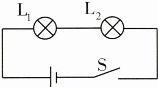 6 小林用如图所示的电路研究串联电路特点,闭合开关后,发现灯 $ L_{1} $ 较亮,灯 $ L_{2} $ 较暗。他对这一现象的解释是电流从电源正极出发,经过灯 $ L_{1} $、灯 $ L_{2} $,电流逐渐变小,所以灯 $ L_{1} $ 较亮,灯 $ L_{2} $ 较暗。小欢认为小林的解释是错误的,她利用图中的器材设计了一个实验,并根据实验现象说明小林的解释是错误的。请你完成下列问题: