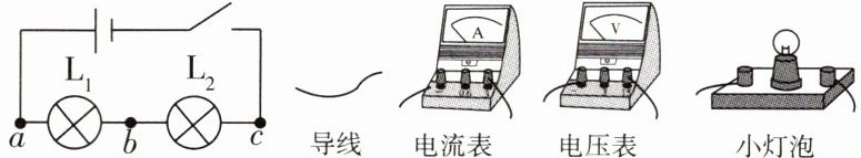 B 由题意知,其中一个灯泡发生开路。A项中,用一根导线分别与两个灯泡并联,则开路的地方会接通,另一个灯泡会发光,可行;B项中,用一个电流表分别串联在题图中的a、b、c三点,电路依然处于开路状态,电流表均无示数,无法测出故障,不可行;C项中,用一个电压表分别与两个灯泡并联,当电压表并联在开路的灯泡两端时,电压表有示数,能测出故障,可行;D项中,用一个小灯泡分别与两个灯泡并联,当小灯泡发光时,与其并联的灯泡即为坏掉的灯泡,能测出故障,可行。故选B。