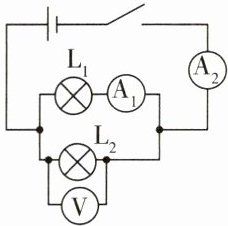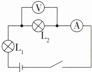 1 如图所示,电源电压为6V,灯泡$L_1$和$L_2$串联在电路中,闭合开关后,当$L_2$发生开路时,电流表的示数为