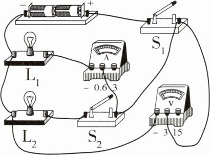 B.只闭合$S_1,$电流表可以测量出通过$L_2$的电流