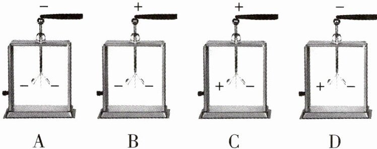 2 [2024 湖北中考]将毛皮摩擦过的橡胶棒接触验电器,能正确表示橡胶棒和验电器金属箔片带电情况的图是(
