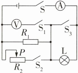 7 根据如图所示的电路图画出以下状态的等效电路图:(1)只闭合开关S、$S_1。$(2)只闭合开关S、$S_2、$$S_3。$