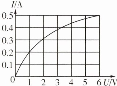 4 [2025泉州泉港区期末]如图为某种灯泡的电流$I与电压U$的关系图像。若有$6只这种灯泡串联接在电压为6V$的电源上,通过灯泡的电流为