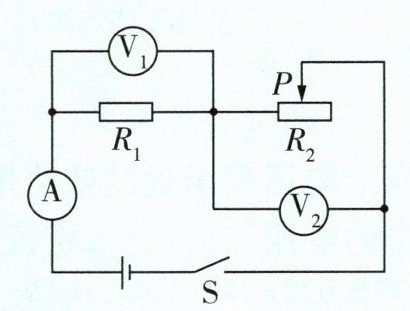 1 [双选]如图所示,电源电压不变,$R_{1}$为定值电阻,$R_{2}$为滑动变阻器。当闭合开关S,滑动变阻器滑片向右端移动时,下列判断正确的是(