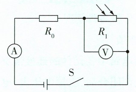 8 [2024绥化中考]如图所示电路中,$R_{0}$是定值电阻,$R_{1}$是阻值随光照强度增大而减小的光敏电阻。闭合开关S,逐渐增大光敏电阻的光照强度,关于两个电表示数的说法中,正确的是(