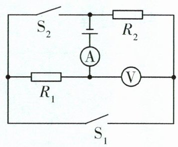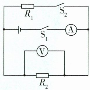 5 [2025北京延庆区期中]如图所示的电路中,电源电压保持不变,$R_{1}和R_{2}$为定值电阻。先闭合开关$S_{1}$,再闭合开关$S_{2}$后,电流表和电压表的示数变化的情况是(