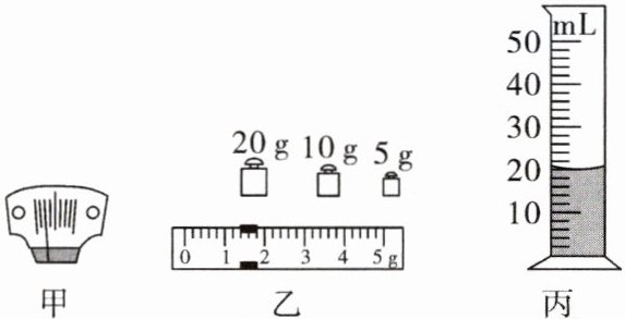 (2)将装有适量某液体的小杯子放在天平的左盘上,天平平衡时,所用砝码和游码在标尺上的位置如图乙所示,若小杯子的质量为20g,则小杯子中液体的质量为