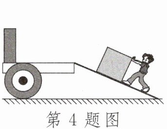 4. 如图所示,工人沿斜面用$30N的推力把一箱重为60N$的货物从斜面底端缓慢匀速推进车厢,斜面高$1.2m$,机械效率为$60\%$,则此斜面的长度为____