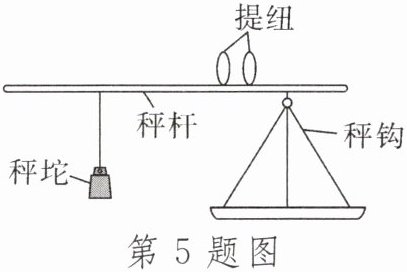 5. 杆秤是杠杆平衡条件的一个应用——称质量的简易工具,如图是杆秤的示意图,由带有秤星的秤杆、秤砣、提纽等组成,此杆秤有两个提纽,提纽与杆秤的连接点相当于杠杆中的