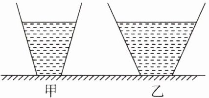 5. 如图所示,甲、乙两个圆台形容器内分别装有质量相等且液面高度相同的不同液体,它们对容器底部的压强分别为 $ p_{甲} $ 和 $ p_{乙} $,则 (