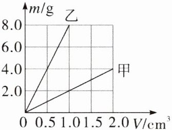3. 如图所示是小聪同学在探究甲、乙两种不同固体物质的质量与体积的关系时得出的图像,用甲、乙两种物质分别做成 $ a $、$ b $ 两个实心正方体,$ b $ 的棱长是 $ a $ 的 2 倍,把它们放在水平地面上,$ a $、$ b $ 两物体对水平地面的压强之比为 (