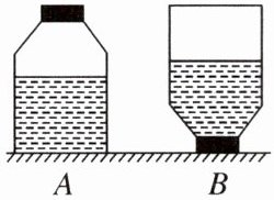 4. 将未装满水且密闭的矿泉水瓶先正立放置在水平桌面上,再倒立放置,如图所示。两次放置时,水对瓶底和瓶盖的压强分别为 $ p_{A} $ 和 $ p_{B} $,水对瓶底和瓶盖的压力分别为 $ F_{A} $ 和 $ F_{B} $,则 (