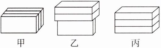1. 如图所示,每块砖的质量相等,长、宽、高分别是 40 cm、20 cm、10 cm,以三种方式摆放在水平地面上。地面受到压强 $ p_{甲} $、$ p_{乙} $、$ p_{丙} $ 的大小关系是 (