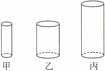 2. 如图所示,有三个实心圆柱体甲、乙、丙放在水平地面上,其中甲、乙高度相同,乙、丙底面积相同,三者对地面的压强相等。下列判断正确的是 (