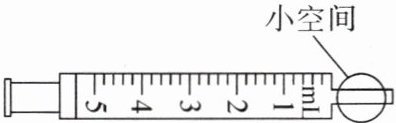 (1)他将乳酸菌饮料倒入烧杯中,用电子秤测得烧杯和乳酸菌饮料的总质量为$m_{1}$,接着他用如图所示的新针筒从烧杯中抽取了体积为$V_{1}$的乳酸菌饮料,再测出烧杯和剩余乳酸菌饮料的总质量为$m_{2}$,则乳酸菌饮料的密度表达式为$ρ=$