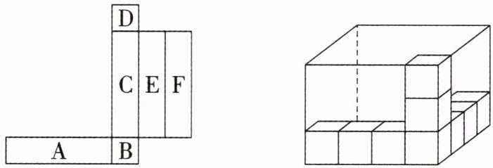 8. 左下图所示为一个长方体的展开图,已知A,B,C三个面的面积之和是36平方厘米,且B面为边长是2厘米的正方形。若E面是长方体的底面,则(