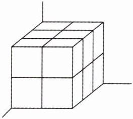 9. 如右上图,每个小正方体的体积是$1 cm^3,$那么长方体盒子的容积是