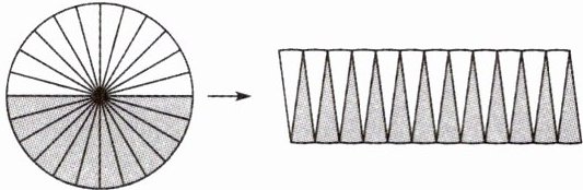3. (荆门)如图,把一个圆平均分成若干份,拼成一个近似的长方形,已知长方形的长是12.56厘米,则它的宽是(