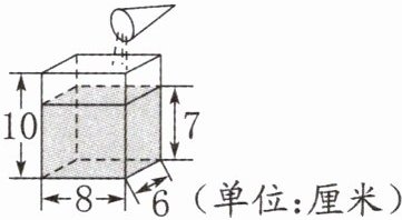 西西:一个长方体玻璃容器从里面量长是8厘米,宽是6厘米,高是10厘米。我已在这个长方体玻璃容器中装了沙,沙的厚度为7厘米。