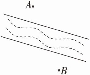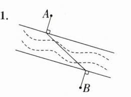 1. 小鸭擅长游泳,在岸上行走却很吃力。它想从点A到河对岸的点B去,请帮它设计一条最省力的路线,在图中画出该路线。