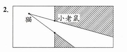 2. 如图,若猫在现在的位置不动,则请画出小老鼠不会被猫看见的活动区域,并画上阴影。