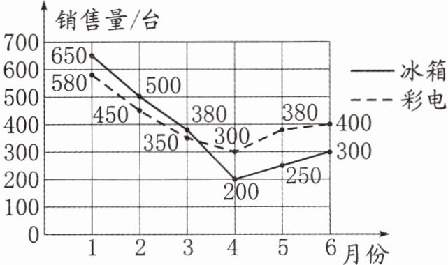 5. (泉州)下面是某家电商场 2022 年上半年销售彩电和冰箱情况统计图。