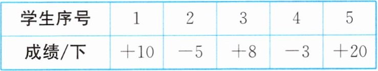 2. (泉州)学校举行跳绳比赛,每班派出五名同学参加比赛,以每分钟跳 120 下为标准,高于或低于 120 下分别用正、负数表示。某班五名同学的比赛成绩如下表。