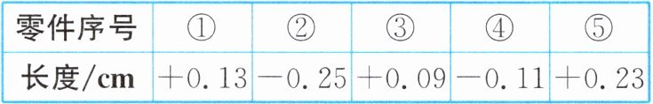6. 某工厂生产一批零件,现抽检5个零件,超过规定长度的部分记为正,不足规定长度的部分记为负,检验结果如下表.